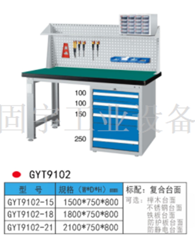 工作臺采用優質冷扎板精工制作而成,堅固的工作桌框架,牢固平穩,可使工作桌承重1000kg;多種工作桌面選擇,可配合不同使用的要求;工具吊柜(箱),側柜(箱)燈架,調節腳杯,,外形美觀;層板,抽屜質量上乘,承重大,抽屜內可根據需要任意分隔;節約空間,適用性強。 范圍 工作臺適合于模具、鉗工、檢測、維修、組裝等各種不同應用場合,具有良好的耐腐蝕性,耐臟性,抗沖擊性和承重能力強。桌面經特殊處理,具有防腐、抗沖擊力強等特點,多種桌面的選擇,可配合不同的使用要求;所配置的抽屜、柜門方便使用者存儲工具;桌角上預留電源孔,方便安裝電源插座。工作臺(桌)分為輕型(可承重300公斤),中型和重型工作臺(桌)可承重1000公斤及特制的工作臺。可根據需要靈活地配置各種吊柜、單柜、雙柜等,可加裝掛板,電器板,燈頂板、調節腳杯,輪子,擱板等桌上部件,具有多種選擇,能夠滿足各種工位的需求。 工作臺材質采用優質冷軋鋼板,表面采用靜電噴涂處理而制成,堅固的工作桌框架,牢固平穩,可使工作桌臺面均勻承重達到1000kg。桌面有多種材質組成,適用于各行業辦公場所。可配合工具柜,吊柜,掛板,單開門柜使用。抽屜、承辦承重大,性能好,抽屜里可根據需求配置分隔條 工作臺分類:根據臺面的不同分為:櫸木工作臺、鋼板合成工作臺、防靜電工作臺、高分子工作臺;根據承重的不同分為:輕型工作臺、中型工作臺、承重型工作臺;根據功能的不同分為:多功能工作臺、帶吊柜工作臺等等。 臺面優勢 復合臺面特性臺面平整度高,撓曲度為0.8mm。表面2mm厚度為高分子材料,使臺面耐酸堿、耐磨、耐油。臺面采用高壓纖維板,使臺面更具有抗沖擊性。特別的圓弧桌角,不易受撞擊損壞。高強度塑膠包邊堅固、實用、不易損壞、不易脫落。櫸木桌面特性桌板使用櫸木與防水膠經加壓制造而成。表面光滑平整,美觀不易變型,耐油、耐熱、耐酸、耐堿,適合一般工廠作業與精密模具維修,儀器置放與檢測等用途。不銹鋼包面特性桌板使用高壓合成板,表面包1-2mm砂面不銹鋼板,以達美觀耐用。耐高溫、耐磨損、耐油、使用壽命長,為多功能桌板,適合一般工廠、食品業、研究室、電子廠無塵室使用。輕型工作臺可承重300kg-500KG防火板臺面特性輕巧、美觀、耐磨、防火。層壓板臺面特性工作桌面平整,變型小,強度高,抗沖擊性好。 標準顏色 產品顏色 標準的顏色可分為6種:淺藍色(RAL5015), 電腦灰(RAL7035), 機床綠(RAL6011),深藍色(RAL5017)。